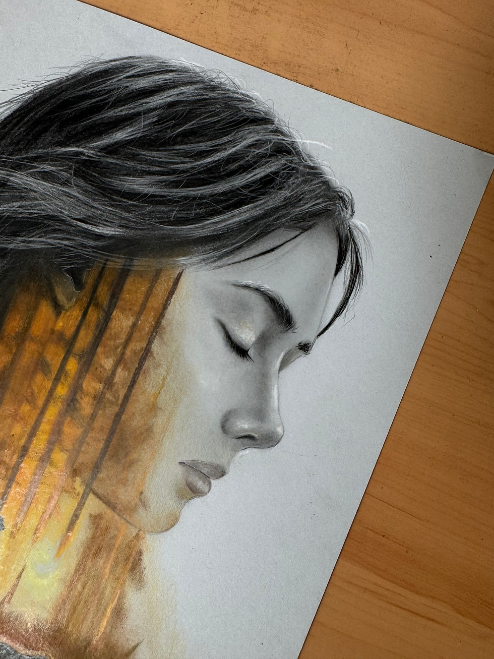 When Memory Turns Into the Light – Original Charcoal & Color Artwork